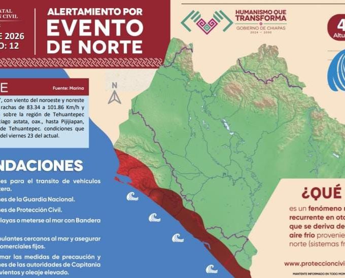 By Redacciónenero 20, 2026Tuxtla Gutiérrez, Chiapas; 19 de enero 2026.- El Sistema Estatal de Protección Civil informa que derivado de los efectos del frente frío número...