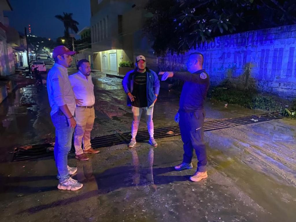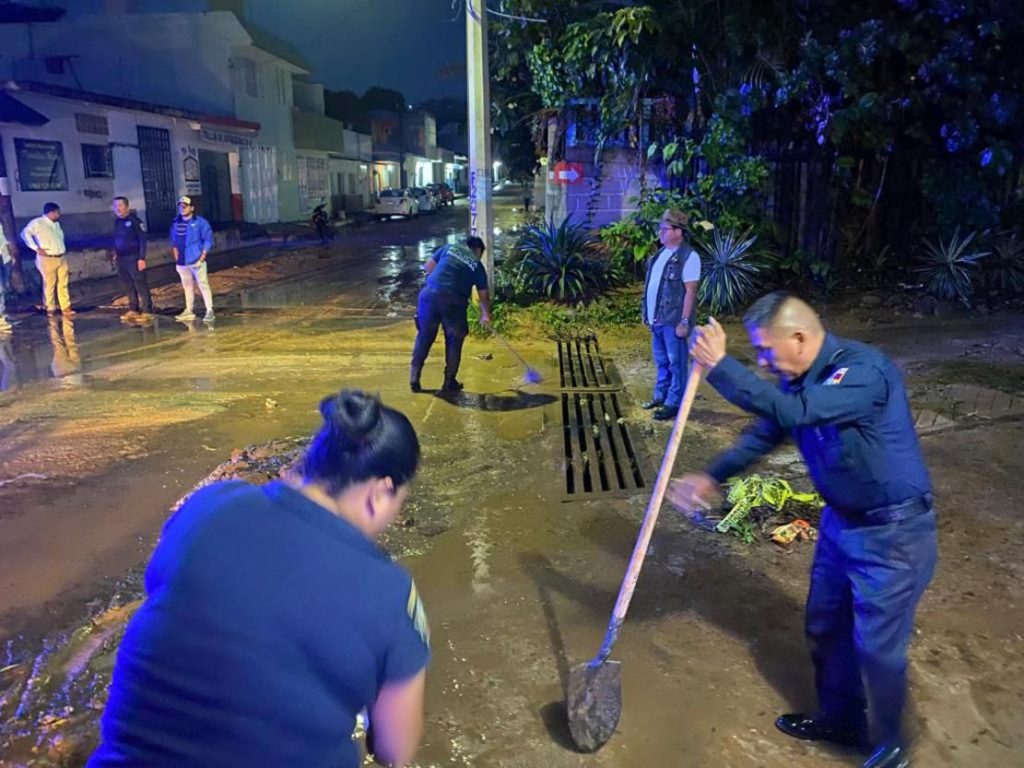 Atendiendo a la ciudadanía durante la fuerte lluvia de las últimas horas, personal de Servicios Públicos, SAPAM, Protección Civil, Seguridad Pública, Bomberos, Tránsito Municipal y del Estado; realizan recorridos preventivos de verificación de rejillas, canales a cielo abierto y zonas de afectación por lluvias en diversos puntos de la ciudad.