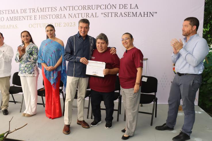 En la presentación del Sistema de Trámites Anticorrupción de la Secretaría de Medio Ambiente e Historia Natural (Sitrasemahn), el gobernador Rutilio Escandón Cadenas destacó que además de modernizar los servicios públicos que se ofrecen a la ciudadanía y al sector empresarial en el rubro de vivienda, este mecanismo digital hará más eficiente y ágil la tramitología, abona al combate de la corrupción y al cuidado ambiental con la reducción de papelería.