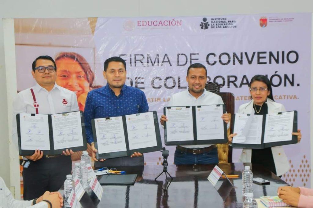 Reunidos en la Sala de Cabildos de la Presidencia Municipal, detallaron el procedimiento de colaboración en el que los Jóvenes y Adultos, tengan la facilidad de recibir la enseñanza con el respaldo del Ayuntamiento y los funcionarios del DIF Cintalapa.