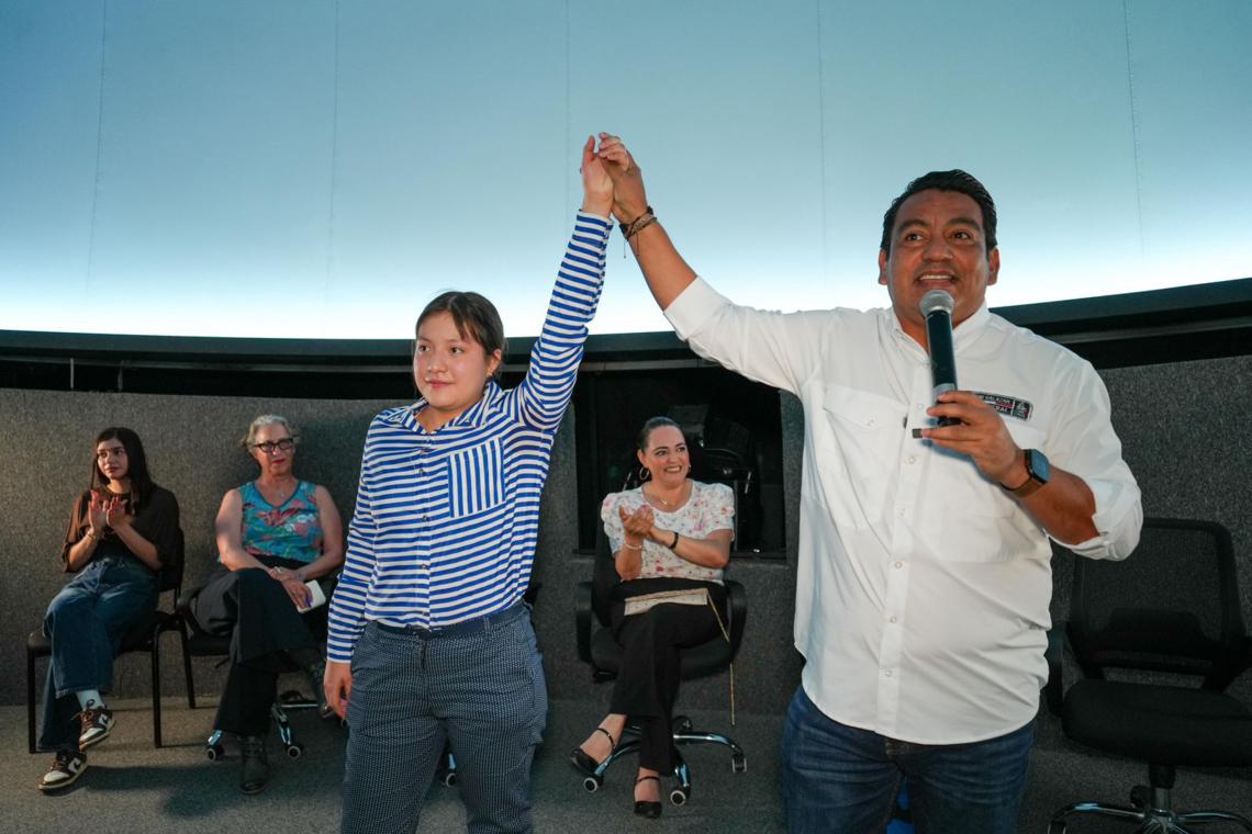 Se realizó la proyección del video “500 ojos mapeando el universo”, que reforzó el papel transformador de la ciencia en la sociedad. Como invitada especial destacó la presencia de la niña genio, Michelle Arellano Guillén, ejemplo inspirador para las nuevas generaciones interesadas en el conocimiento científico y el desarrollo académico temprano.