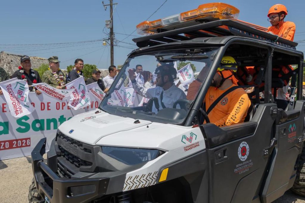 Desde Bahía de Santa Brígida, en el municipio de Arriaga, el Gobernador del Estado, Eduardo Ramírez Aguilar dio el banderazo de salida del Operativo Semana Santa Segura 2026, acompañado del Secretario de Protección Civil, Mauricio Cordero Rodríguez; el Secretario de Salud, Dr. Omar Gómez Cruz; el Secretario de Seguridad del Pueblo, Óscar Alberto Aparicio Avendaño y funcionarios de los tres órdenes de Gobierno.