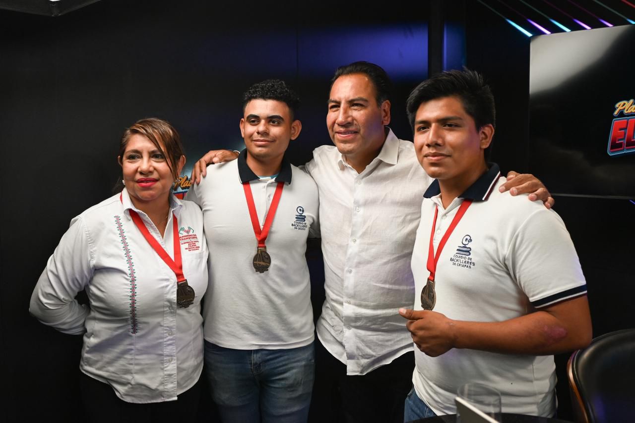 Durante el programa, la titular del Cobach estuvo acompañada de Josué Antonio Aybar Zepeda, Ana Sarahí Aldana López y Enrique Morales Hernández, estudiantes del CEMSaD 255 Puerto Madero y la docente Erika Olimpia Rodríguez Morales, quienes representarán a Chiapas y a México en el concurso internacional de Expo Ciencias Brasil 2026.