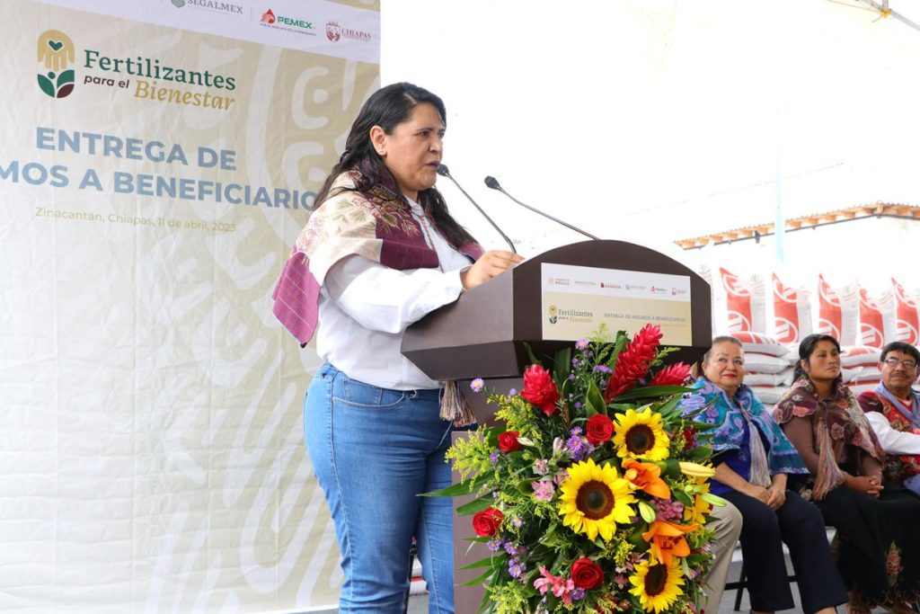 La coordinadora del Programa de Fertilizantes para el Bienestar, Araceli Cerón Trejo, indicó que por instrucción del presidente López Obrador, en Chiapas incrementó el número debido a que se sumaron productores de mediana escala, de cacahuate, de garbanzo y de milpa; y en este año recibirán 12 bultos de fertilizantes, respetando 300 kilogramos por hectárea.