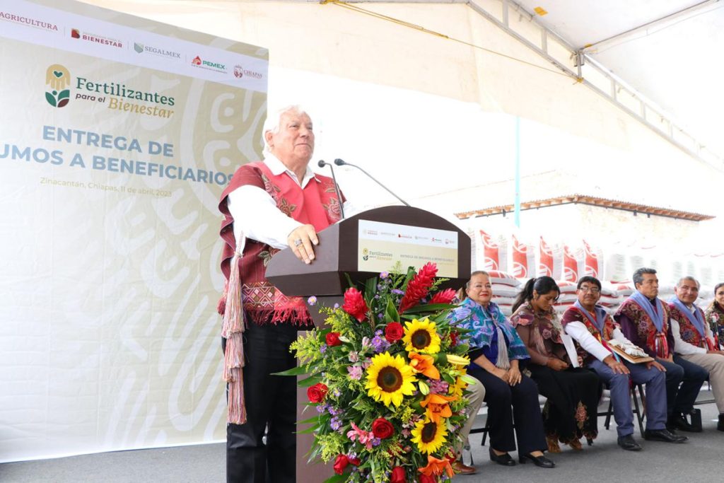 Desde el municipio de Zinacantán, el mandatario agradeció al presidente Andrés Manuel López Obrador por incluir a todas y todos en el progreso del país y por apoyar a las familias campesinas de Chiapas porque, dijo, en otros gobiernos el fertilizante se entregaba a destiempo y a pocas personas, sin embargo, instruyó aumentar el padrón de beneficiarios, el año pasado a 250 mil y este año a 300 mil.