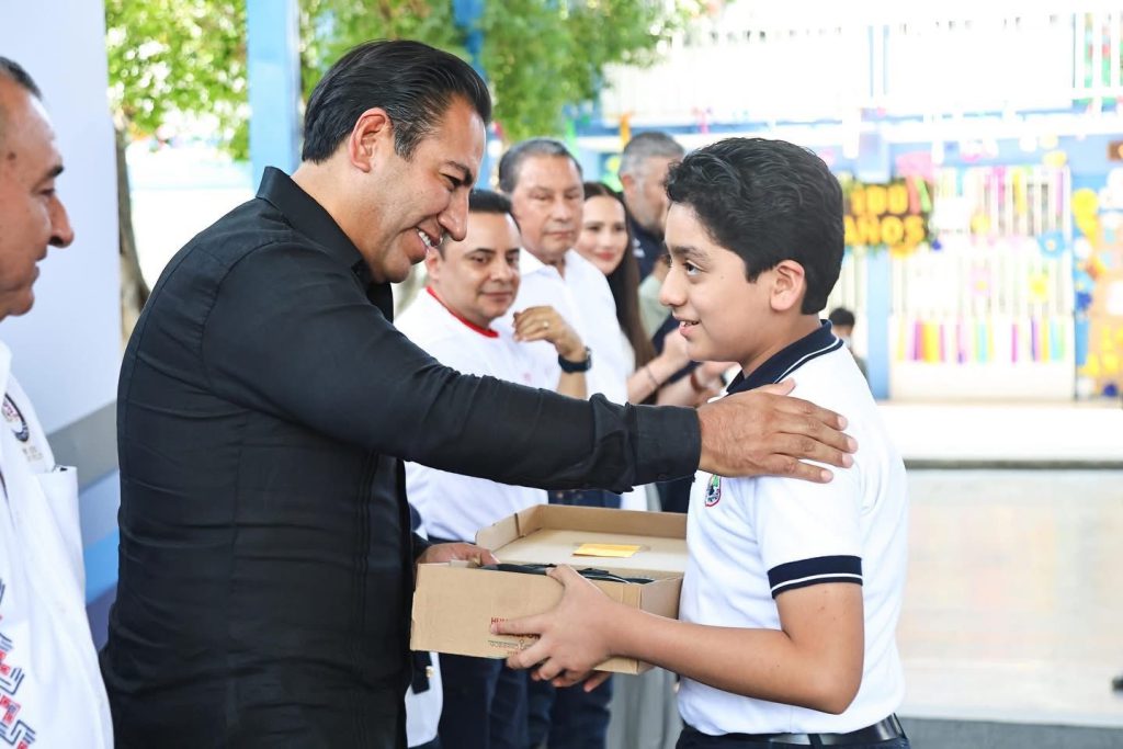 La comunidad escolar manifestó su agradecimiento al gobernador Eduardo Ramírez por acompañar este aniversario y por impulsar acciones que contribuirán a mejorar las condiciones del plantel.