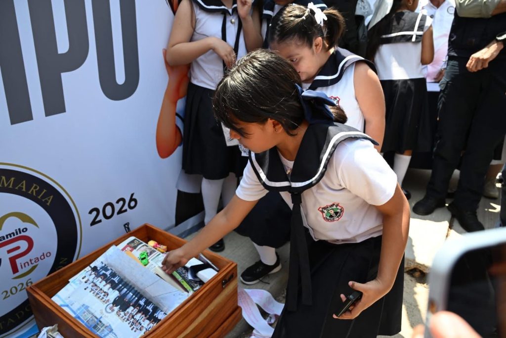 En un ambiente festivo, el mandatario convivió con niñas, niños, docentes y madres y padres de familia; junto a ellas y ellos participó en la colocación de una cápsula del tiempo y en la develación de una placa conmemorativa. Señaló que, cuando este testimonio sea abierto en el futuro, quedará constancia del esfuerzo conjunto de la comunidad escolar y de las autoridades por aportar a la construcción de un mejor Chiapas y un mejor México.