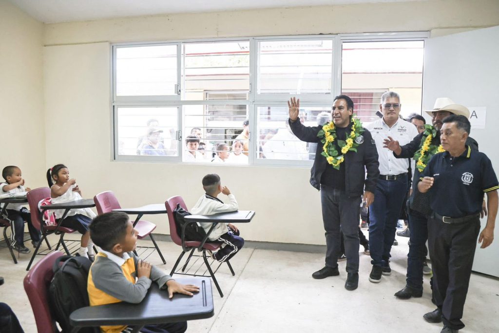 El mandatario también visitó la Escuela Primaria Bilingüe Belisario Domínguez Palencia, donde inauguró nuevos espacios educativos con una inversión cercana a los dos millones de pesos. Durante la convivencia con estudiantes, docentes y personal directivo, manifestó que garantizar escuelas dignas, seguras y de calidad para la niñez y juventud chiapaneca es una de las prioridades de su administración.