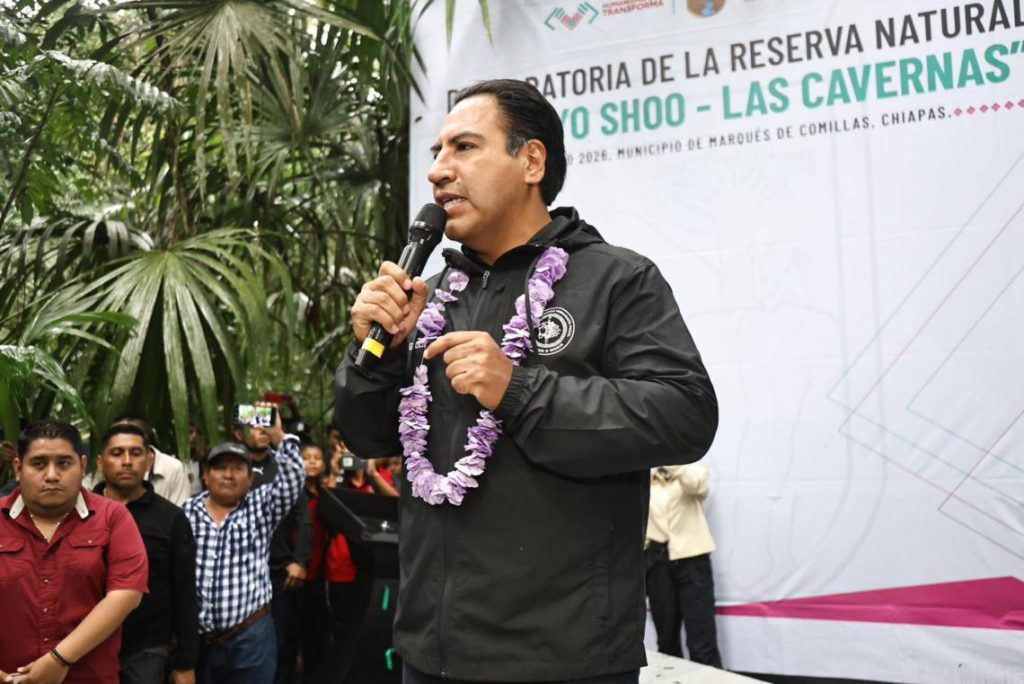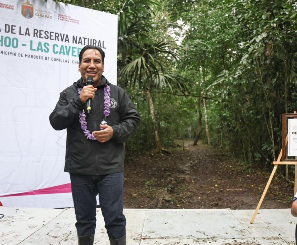 En el municipio de Marqués de Comillas, el gobernador Eduardo Ramírez Aguilar encabezó la declaratoria de la reserva natural Kixin Yo Shoo–Las Cavernas, ubicada en el ejido San Isidro, como Área Natural Protegida bajo la categoría de Zona Sujeta a Conservación Ecológica, con una superficie superior a las 950 hectáreas. En este contexto, el mandatario destacó que su administración tiene una visión ambiental clara y un profundo respeto por la madre tierra, por lo que se trabaja de la mano con las comunidades para impulsar el desarrollo, priorizando la conservación de los recursos naturales.