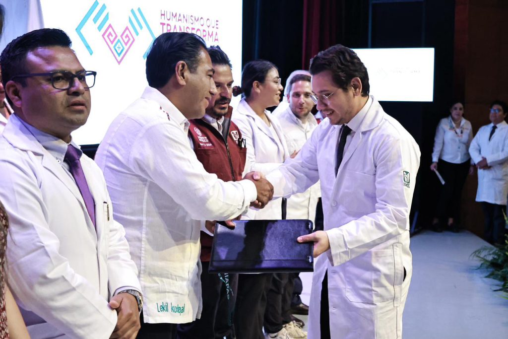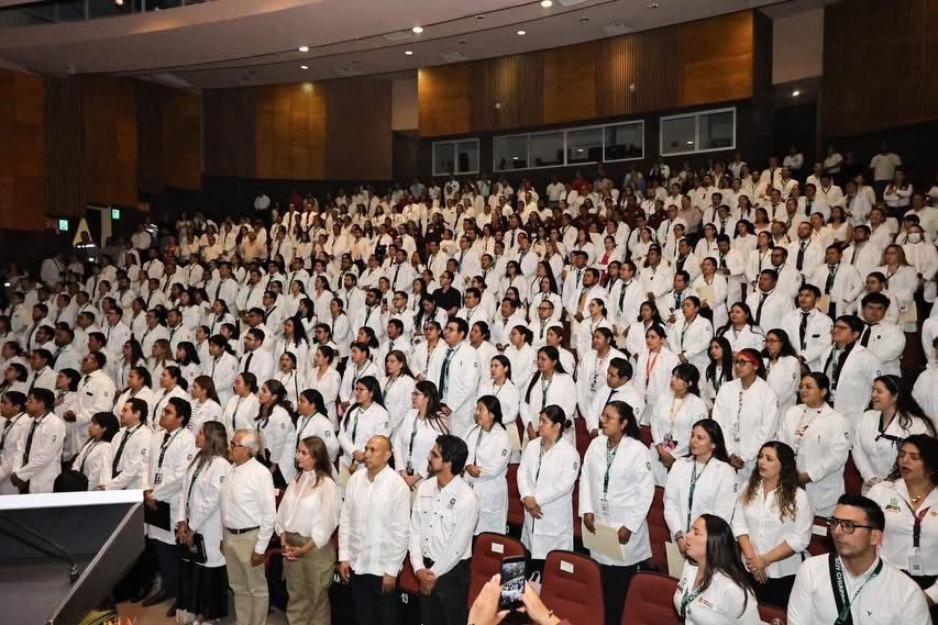 Por su parte, Zoé Robledo destacó el impulso para crecer en el número de becas para la formación de especialistas, que pasó de 5 mil 800 en 2019 a 9 mil 813 en el presente año, “entraron como residentes al R1 con el presidente López Obrador y egresaron para sumarse al Seguro Social en los tiempos de Claudia Sheinbaum Pardo, son parte de una nueva generación de que debe significar algo distinto para los servicios de salud”.