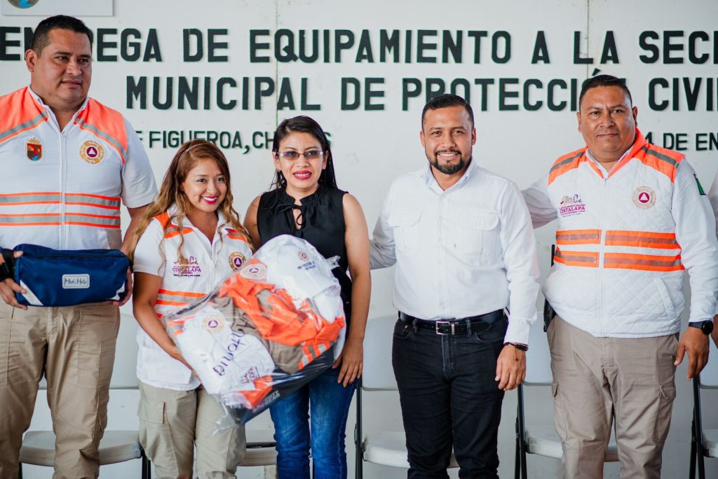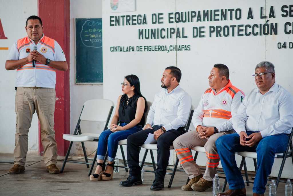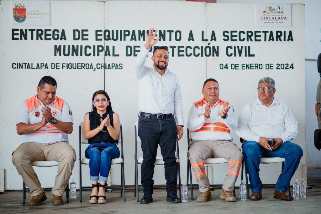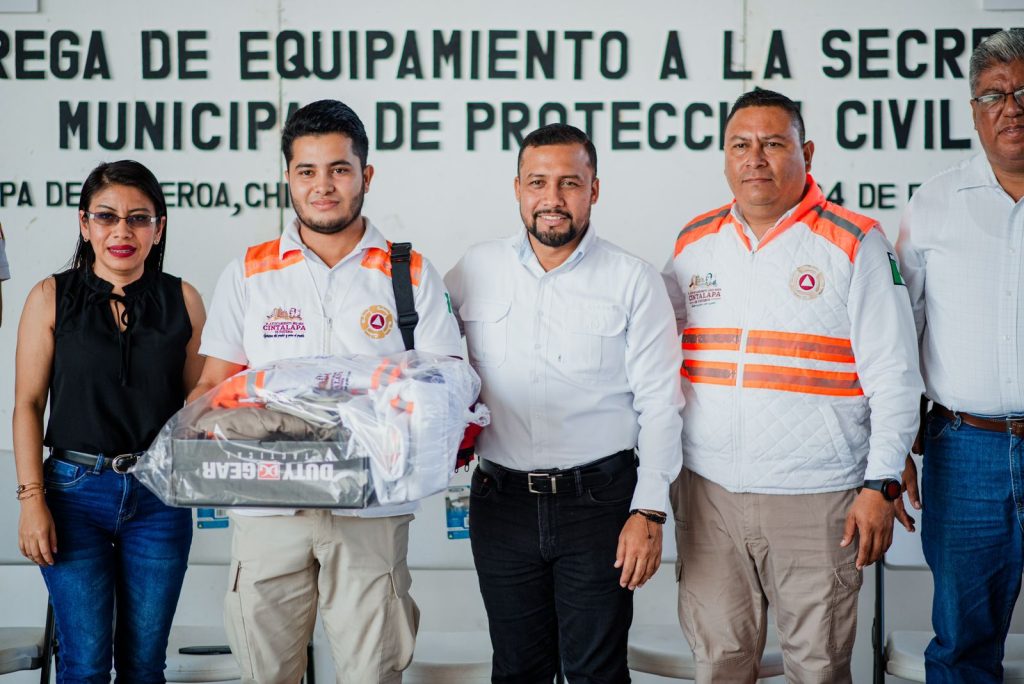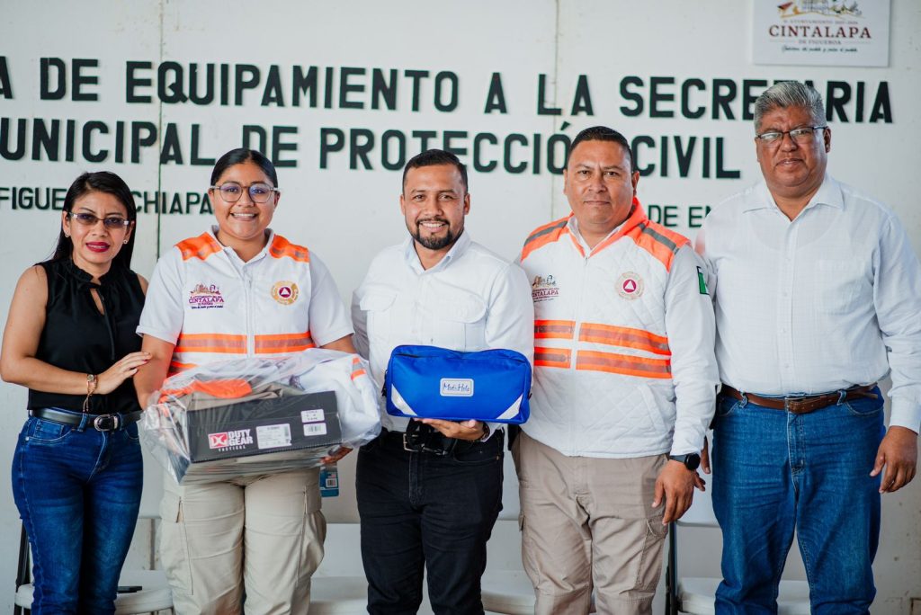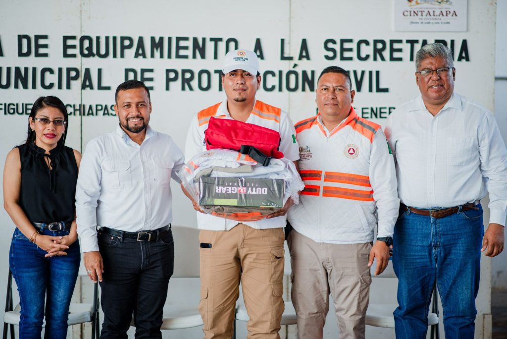 Cintalapa.- Como parte de la profesionalización y mejora en la atención a los ciudadanos, se realizó la Entrega de Equipamiento a la Secretaria Municipal de Protección Civil; donde el Profe Neto presidente Municipal entregó uniformes que constatan de Pantalón, camisa, playera, chaleco, chamarra, overol, gorra y botas, a los elementos operativos y administrativos pertenecientes a Protección Civil.