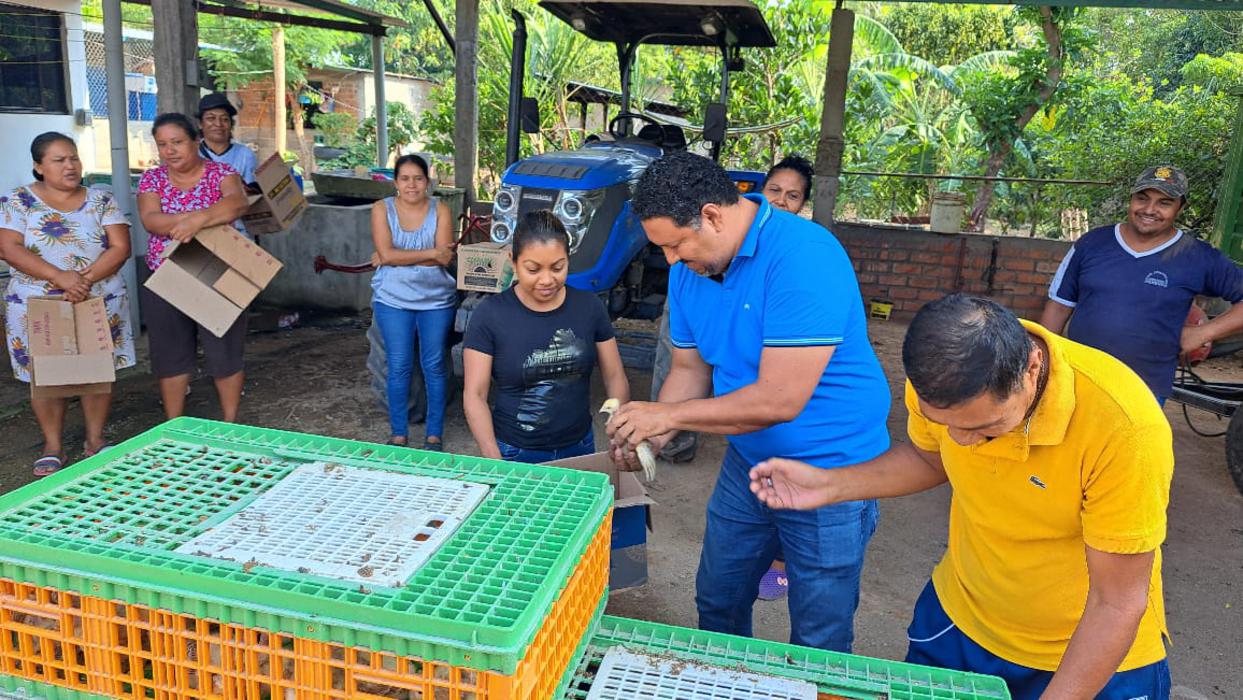 Jiquipilas, Chiapas. – Con el propósito de ayudar a las familias de la zona rural, el Alcalde Hugo Lázaro entregó proyectos de aves de traspatio en los ejidos Miguel Hidalgo, Francisco Villa I y El Nacional.