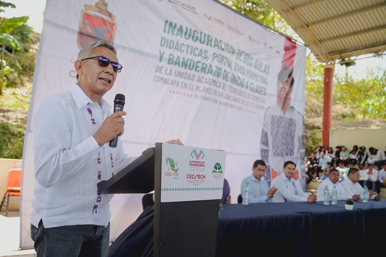 Cabe destacar que se realizó el banderazo de inicio de clases de la Unidad Académica del Tecnológico de Frontera Comalapa, instalada en este plantel, lo que permitirá ampliar las oportunidades de continuidad educativa para las juventudes de esta región.