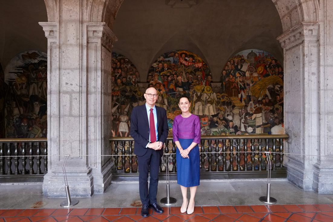 ”Recibí a Volker Türk, Alto Comisionado de las Naciones Unidas para los Derechos Humanos; Matthias Behnke, director regional para las Américas de la Oficina del Alto Comisionado; Humberto Henderson, representante en México de la Oficina del Alto Comisionado; y a Allegra Baiocchi, coordinadora Residente de la ONU en México»-