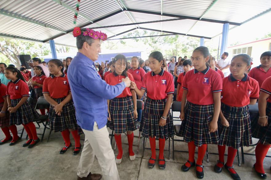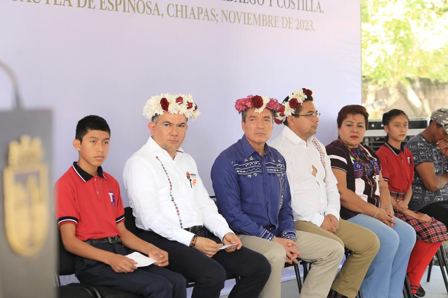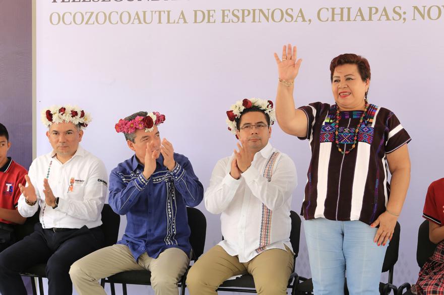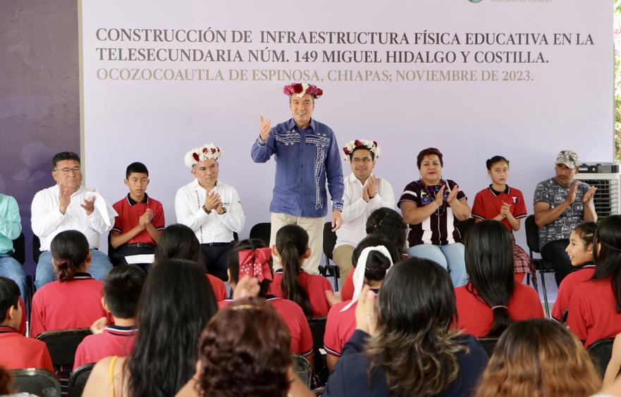 Al inaugurar la construcción de infraestructura educativa en la Escuela Telesecundaria número 149 Miguel Hidalgo y Costilla, de la localidad Espinal de Morelos en el municipio de Ocozocoautla de Espinosa, el gobernador Rutilio Escandón Cadenas destacó que en Chiapas se impulsan obras prioritarias en este rubro, con el objetivo de garantizar la cobertura educativa a niñas, niños y jóvenes, a través de espacios seguros y de calidad.