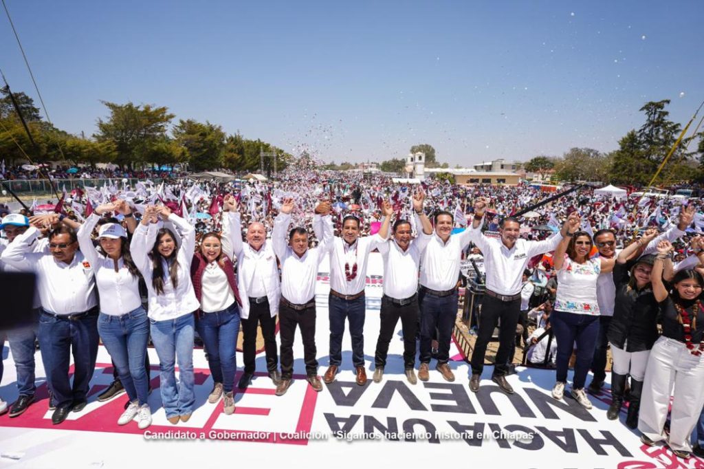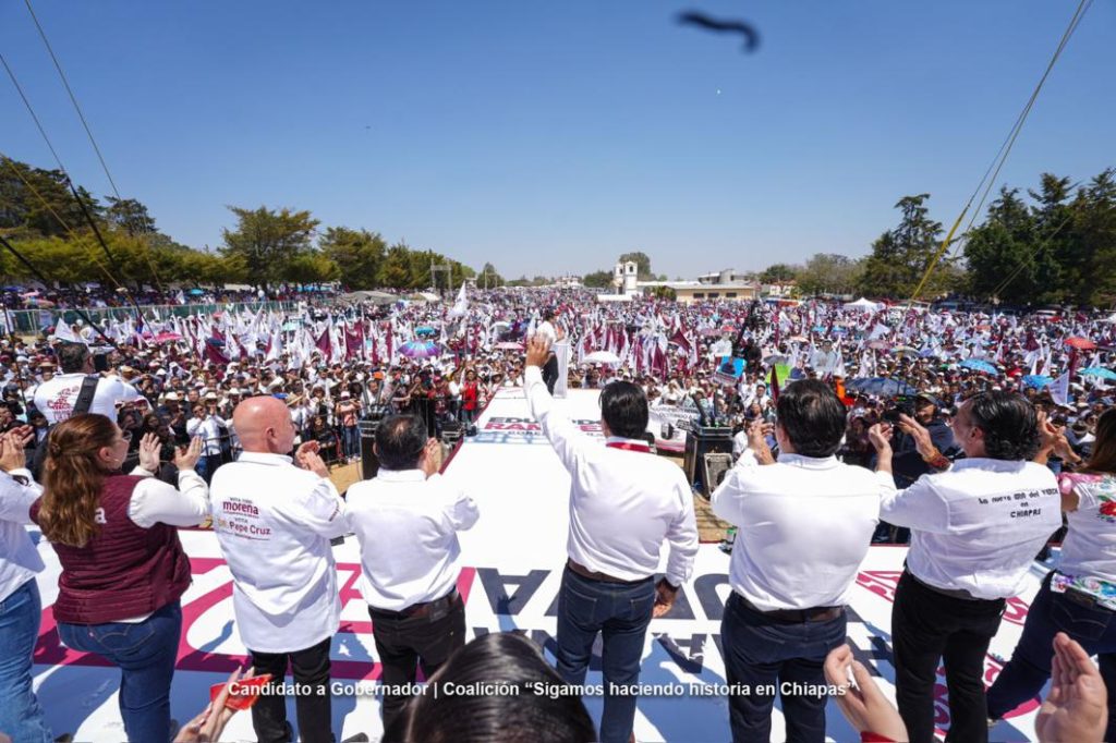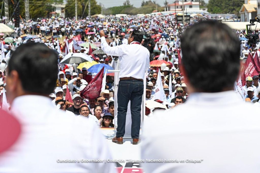 La Trinitaria, Chiapas.- Al grito de gobernador, miles de chiapanecas y chiapanecos recibieron al candidato por la coalición “Sigamos Haciendo Historia en Chiapas” al gobierno del estado, Eduardo Ramírez Aguilar, en su arranque de campaña en el municipio de La Trinitaria.